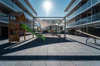 Suite à la construction de trois bâtiments, nous avons procédé à l'aménagement d'une place de jeux privée. Pour préserver l'esthétique du lieu, nous avons défini l'emplacement de la place de jeux de manière à cacher la zone de rétention des eaux de pluies. Afin d'optimiser le planning des autres corps de métier présents, nous avons posé une bordure en acier sur le pourtour de la place. Par la suite, nous avons sécurisé la place de jeux avec une barrière double fil anthracite et permis l'accès grâce à deux portails. Nous avons installé différents engins de jeux pour permettre aux enfants de tout âge de s'épanouir et avons utilisé un sol amortissant en dalles de différentes épaisseurs en fonction de la hauteur de chute, respectant ainsi les normes BPA.