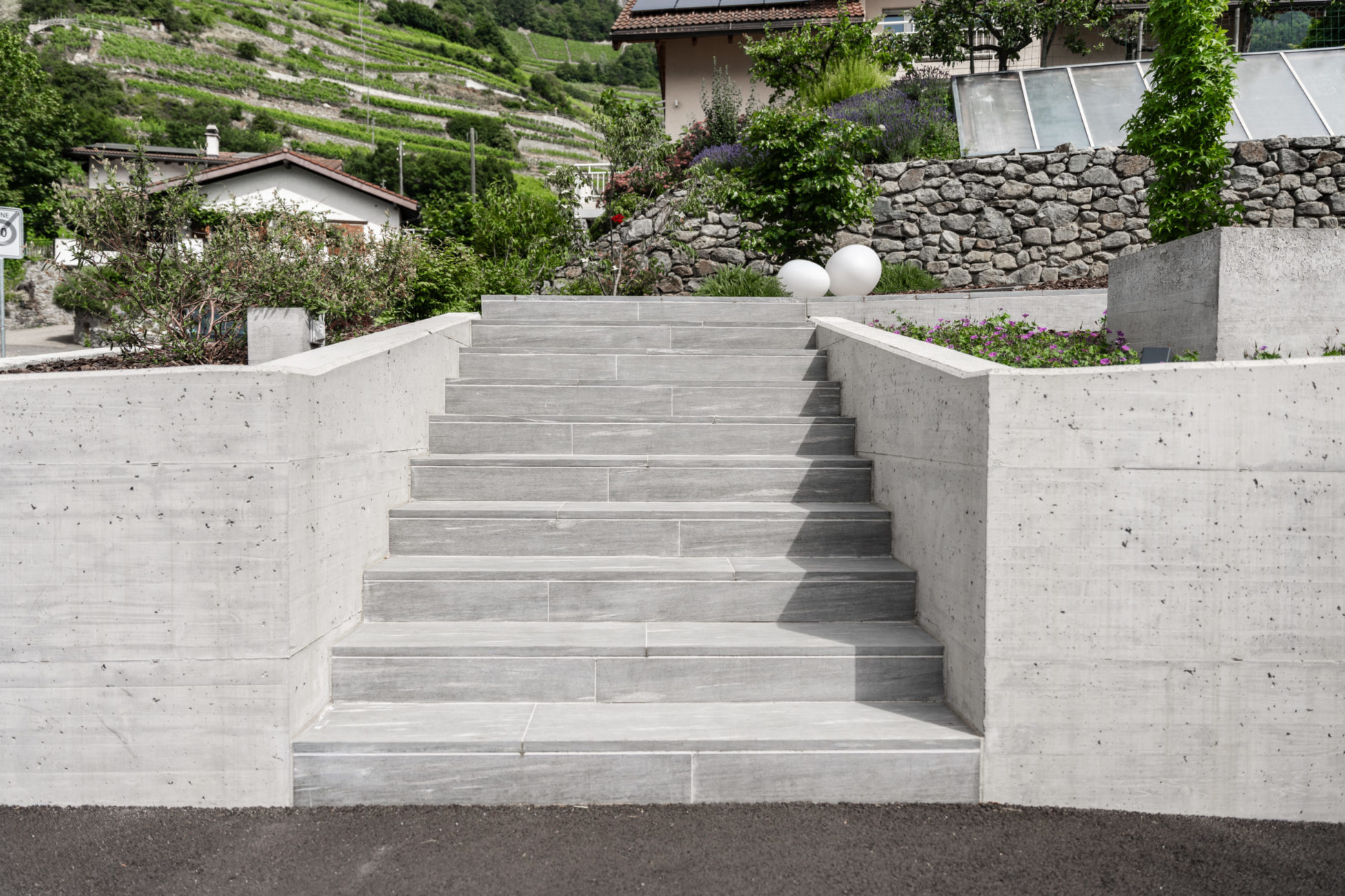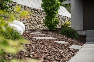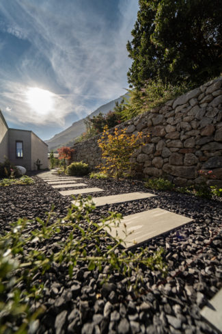Nous avons réalisé ce jardin pour créer un espace à la fois esthétique et fonctionnel. L’accès principal a été réalisé en pierre naturelle de Vals, apportant charme et durabilité à l’ensemble. Dans le jardin, un mur de soutènement en gabion structure le terrain tout en s’intégrant harmonieusement au paysage.