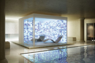 Réalisé avec des briques de sel extrait d’une mine située à 800 mètres de profondeur sous le niveau de la mer, le mur de sel peut être réalisé sur mesure et rétroéclairé à votre choix avec des LED blanches ou colorées.