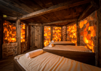 Installez-vous confortablement dans cette ambiance rappelant l'harmonie de l'Himalaya, une nature en blocs de sel qui capture la chaleur apaisante et les effets thérapeutiques du sel. A la décoration de la pièce peut s’ajouter en effet une injection de solution saline très fine aux ultrasons, vous permettant de bénéficier des effets des ions négatifs.